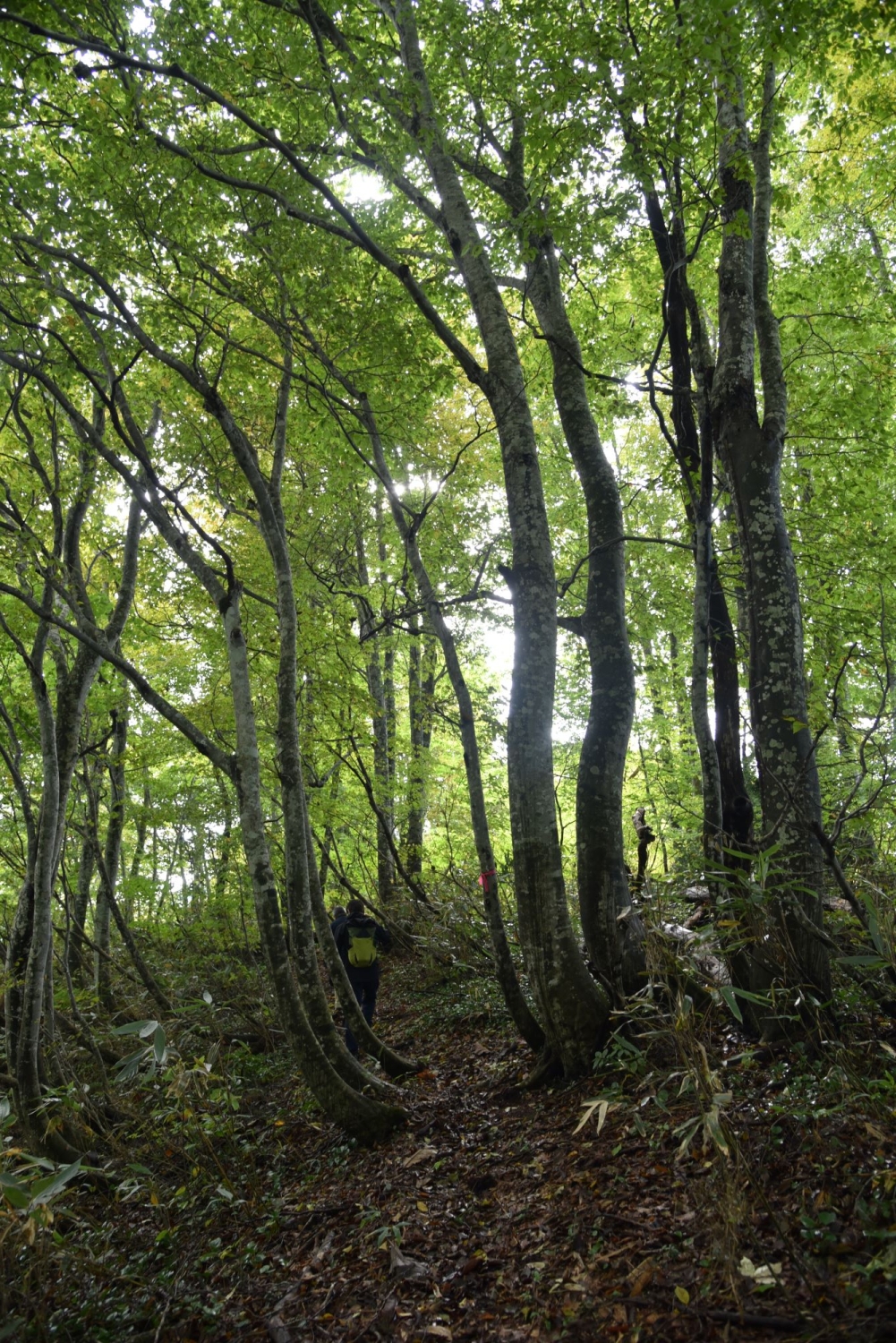 These beech woods are known as a “climax forest,” the final stage of natural forest growth when left undisturbed. In newly bare land, sun-loving shrubs like azaleas appear first; next come taller, pioneering species such as birch, which dominate for a time. Eventually, shade-loving trees take root, and in the end, beech and mizunara oaks take over the canopy.
